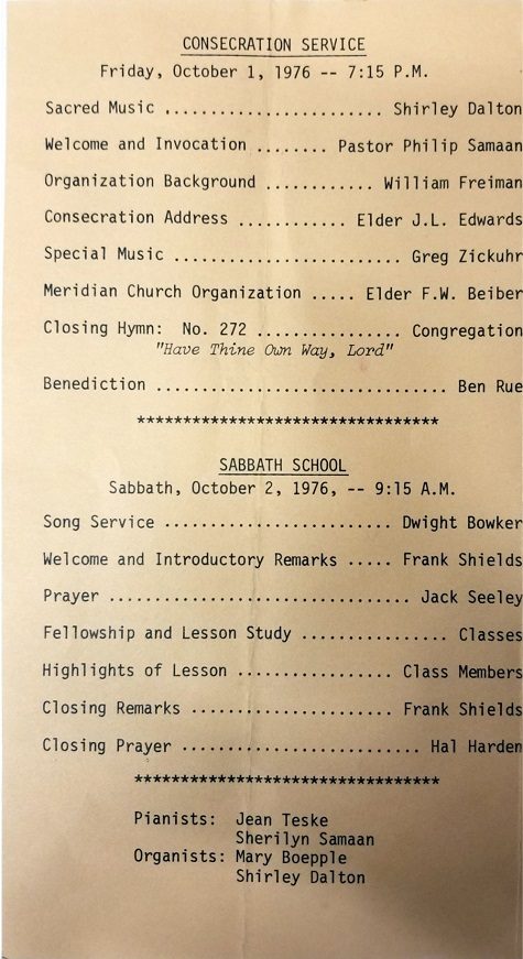 A renovation committee formed in January 1976 and work began to remodel the building. Ten months later the Meridian SDA Church was officially organized on October 1, 1976 with 62 charter members. Elder Philip Samaan served as its first pastor. The Meridian church met at this location for the next 15 years.