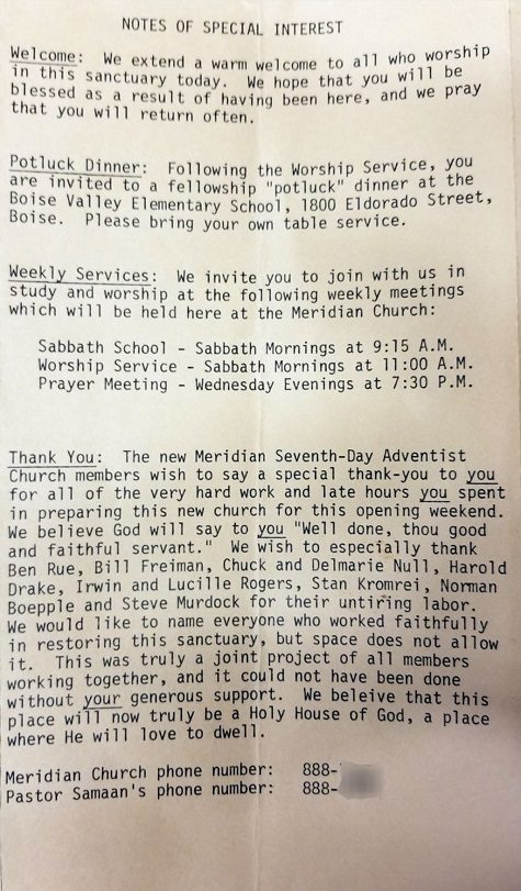 In 1968 the members of the Boise SDA Church began to discuss plans for adding another church to serve the Boise area. For several years members from the Boise congregation watched the market for a church building, or property, for sale.